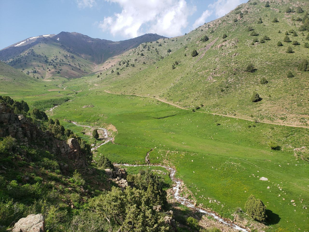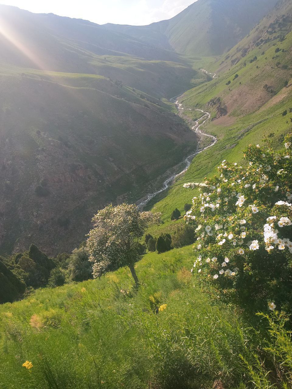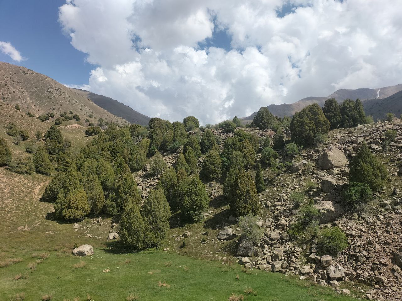 Florasi: Tog‘ mintaqasi 1200-1300 m dan 2800 m gacha bo‘lgan balandlikda yaxshi rivojlangan. Bu mintaqada qoratikan, naʼmatak, do‘lana o‘suvchi butazor, archazor va bargini to‘kadigan tog‘ o‘rmonlari mavjud. Yaylov mintaqasi 2700-2800 m dan doimiy qorlik va muzliklargacha bo‘lgan oraliqda bo‘lib, uning quyi qismini subalp, yuqori qismini alp o‘tloqlari egallagan.