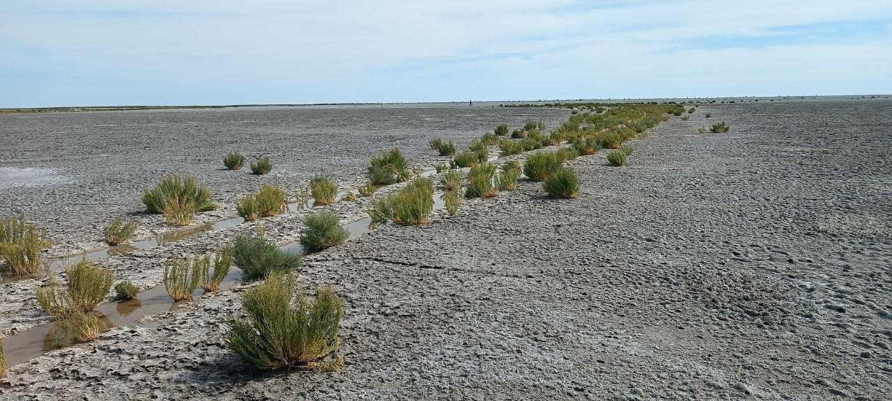 Флора.  На территории встречаются саксаул, черкез, джузгун, камыш, тамариск  и местами цистанхе. Всего распространено более 36 видов растений.