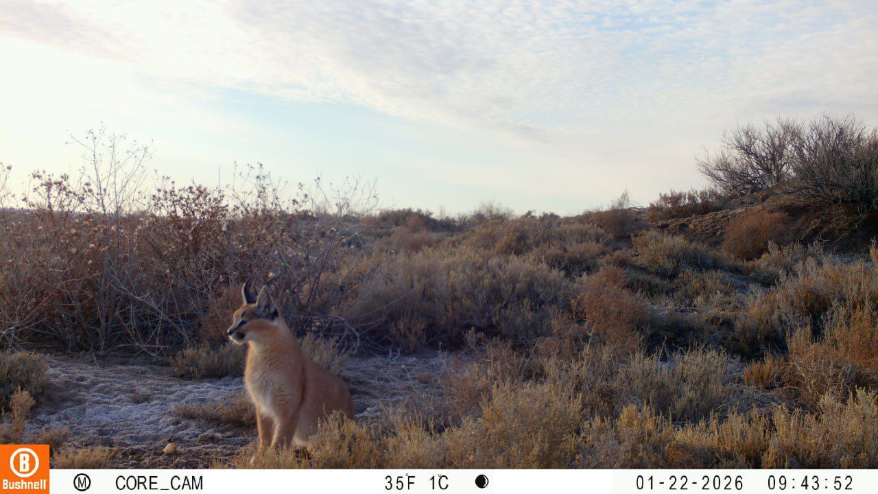 🐱 На одном из фотоловушек, установленных в государственном заказнике «Барсакельмес», был зафиксирован каракал.
